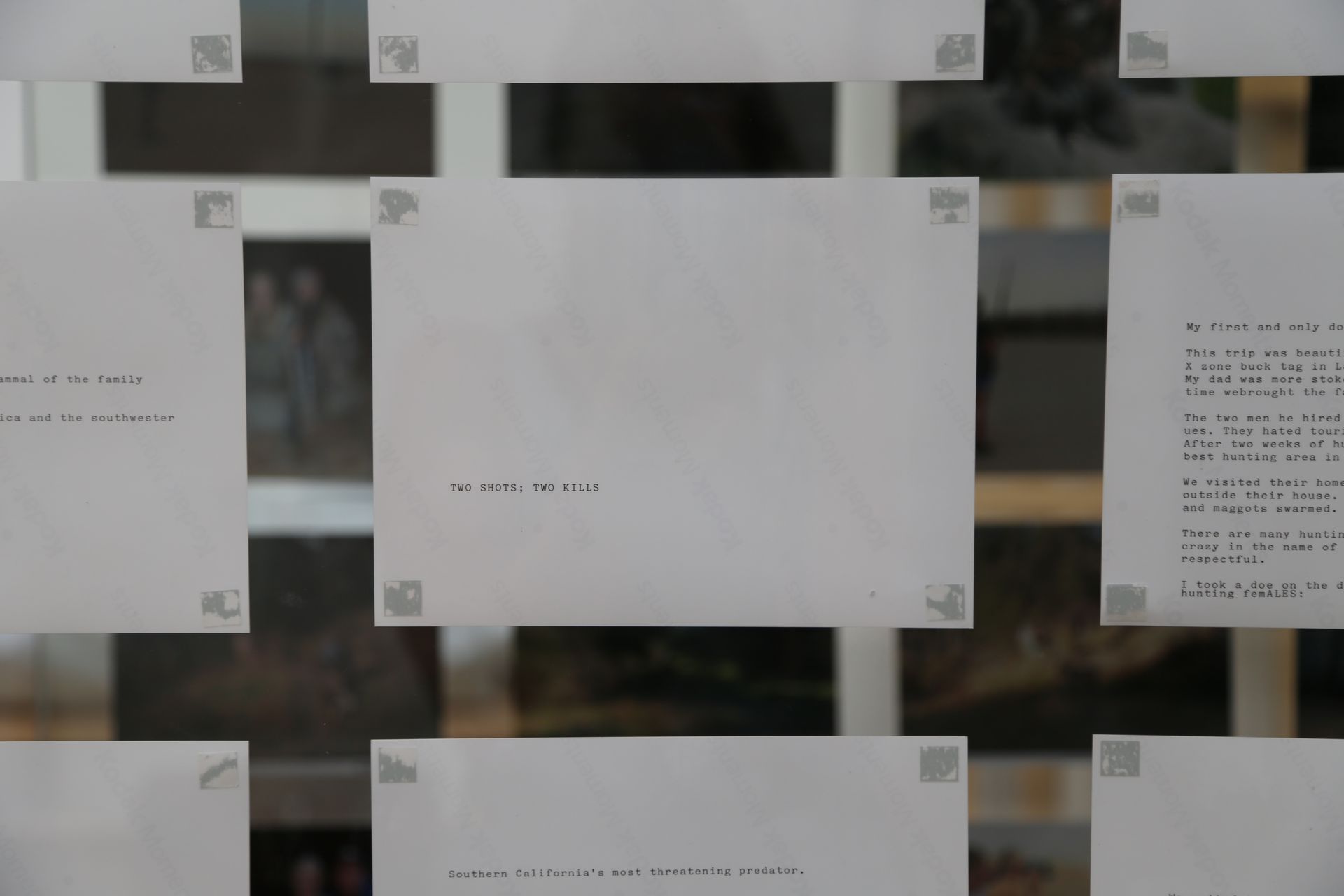 2018 Photo Installation from magazine: WILDERNESS UNLIMITED Vitrine, 132 Digital C-Prints, Text 210x190x40